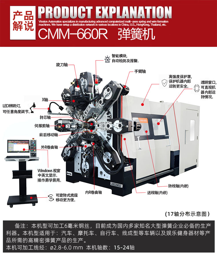 本机型适用于汽车、摩托车、自行车、线成型等车辆以及娱乐健身器材等产品所需的高精密弹簧产品的生产。