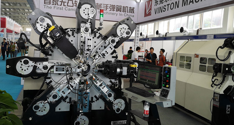 参展商与永腾展厅工作人员详细了解弹簧机性能。